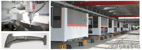 主要應(yīng)用于汽車熱成形領(lǐng)域,解決了高強(qiáng)鋼難沖壓的問題,替代了大量的沖孔模和修邊模,可以說是削鐵如泥,適用于批量連續(xù)作業(yè),可大幅降低產(chǎn)品開發(fā)周期及模具成本。和傳統(tǒng)機(jī)器人三維切割相比,切割精度高、速度快,斷面更平滑。