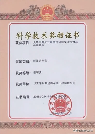 2015年·“汽車制造中的高質(zhì)高效激光焊接、切割關(guān)鍵工藝及成套裝備”項目榮獲“國家科技進(jìn)步一等獎”;