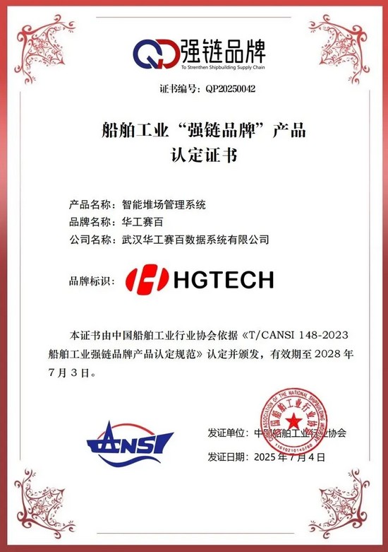 近日,中國船舶工業(yè)行業(yè)協(xié)會開展2025年度船舶工業(yè)“強(qiáng)鏈品牌”產(chǎn)品申報和認(rèn)定工作。華工賽百申報的智能堆場管理系統(tǒng)通過專家團(tuán)隊(duì)審查,被認(rèn)定并列入船舶工業(yè)“強(qiáng)鏈品牌”產(chǎn)品目錄。該系統(tǒng)具備高度集成性、全流程數(shù)字化,并配備多重安全防護(hù)措施。