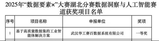 近日,由國家數據局、湖北省人民政府指導,湖北省數據局會同14個省直部門聯合主辦的2025年“數據要素x”大賽湖北分賽決賽評審工作收官。華工賽百繼2024年在 “數據要素×” 大賽湖北分賽工業(yè)制造賽道榮獲一等獎后,此次憑借“基于高質量數據集的工業(yè)智能體解決方案”,再度斬獲2025年“數據要素x” 大賽湖北分賽 “數據洞察與人工智能” 賽道一等獎。