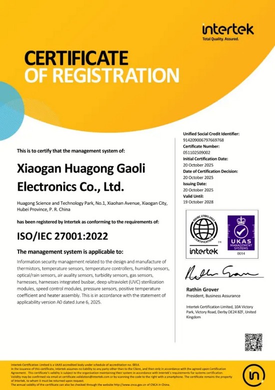 華工科技核心子公司華工高理繼2024年通過TISAX認證后,近日再添ISO 27001:2022信息安全管理體系認證,成為傳感器行業(yè)內(nèi)首家同時斬獲這兩大權威認證的企業(yè),標志著華工高理的信息安全管理體系不僅滿足汽車行業(yè)的嚴苛要求,更具備了服務全球各領域客戶的通用能力。